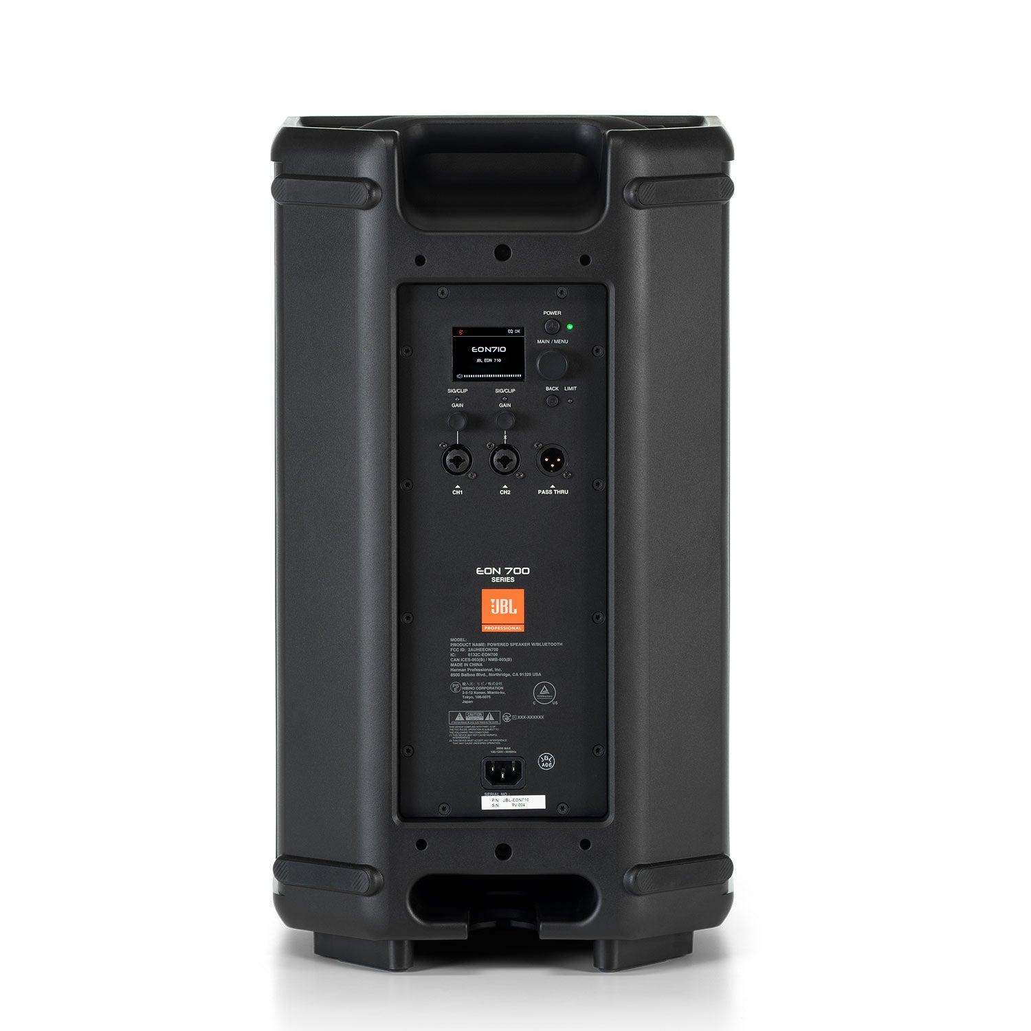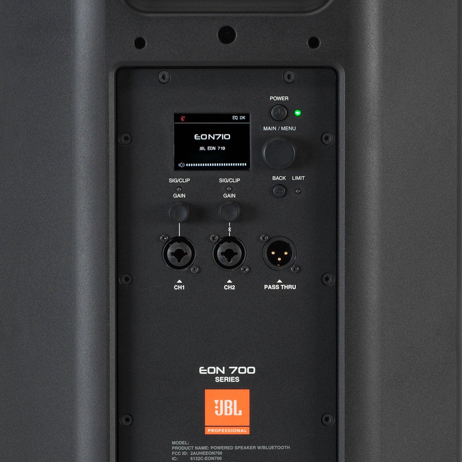 El Eon 710 de la última línea de JBL Eon700 es un parlante profesional activo diseñado especialmente eventos en vivo o en instalación. Posee una estructura de polipropileno mutlipropósito resistente y duradero, su rejilla es de acero con recubrimiento en polvo reforzado con una pantalla negra acústicamente transparente para proteger sus componentes, posee un orificio de 36mm para atril con seguro dos manillas para un facil transporte. Este nuevo modelo posee un woofer de 10 pulgadas, bocina de alta frecuencia rediseñara y una potencia en rms de 650w. Una de sus nuevas y mejoradas características es que posee bluetooth para ecualizar a través de la app incluida de JBL y transmitir audio, además su función de atenuación permite disminuir el volumen si detecta voz. Cuenta con un control de volumen master, dos canales con control de volumen independiente y una conexión para puentear otro parlante Eon 715 (copia de señal). CARACTERÍSTICAS: Parlante activo profesional. Parlante eléctrico 10IN. Posee un woofer de 10 pulgadas (modelo 710G). Imán de woofer de ferrita. Bocina de alta frecuencia rediseñada. Bluetooth para ecualizar a través de la app incluida de JBL y transmitir audio. Bobina del woofer de 2 pulgadas. Tiene un tweeter de 1 pulgada con controlador de compresión 2414H. Imán del tweeter de neodimio. Impedancia del transductor: Baja frecuencia nominal de 4 ohmios, alta frecuencia nominal de 8 ohmios. DSP dbx avanzado: supresión automática de retroalimentación, atenuación, retardo de altavoz de 100 ms, Ecualizador paramétrico. Máxima SPL de 125dB a 1 m/4Pi. Rango de frecuencia -10 de 52Hz - 20kHz. Rango de frecuencia -3 de 65Hz - 20kHz. Dispersión horizontal de 110° y vertical de 60°. Potencia en rms de 650w. Entrada de Alimentación CA de 100v - 120V y 220V - 240V. Posee una refrigeración pasiva. Cuenta con indicador led de alimentación, limite, delantera, de señal y SSM. Impedancia de entrada de 50.000/100.000 desequilibrada/equilibrada. Ganancia de entrada de -infinito hasta +36dB. Frecuencia de cruce de 2kHz. Salidas y entradas: 2 conectores combo XLR, BT, 1 XLR M thru. Medidas producto: 58,7X34X30cm. Peso neto: 12kgs. Medidas caja: 61x50x40,7cm. *NO POSEE BATERIA INTERNA, FUNCIONA SOLO CONECTADO A LA CORRIENTE.