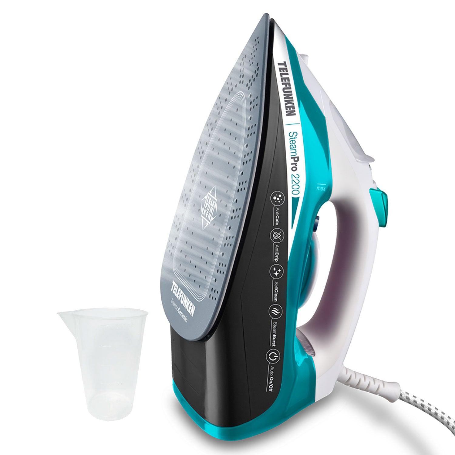 La SteamPro 2200 de Telefunken es una plancha a vapor de alto rendimiento, diseñada con una estructura resistente y duradera para facilitar el planchado diario con resultados eficientes y seguros ✨. Incorpora una base ThermoCeramic antiadherente, que asegura un deslizamiento suave sobre todo tipo de telas.
