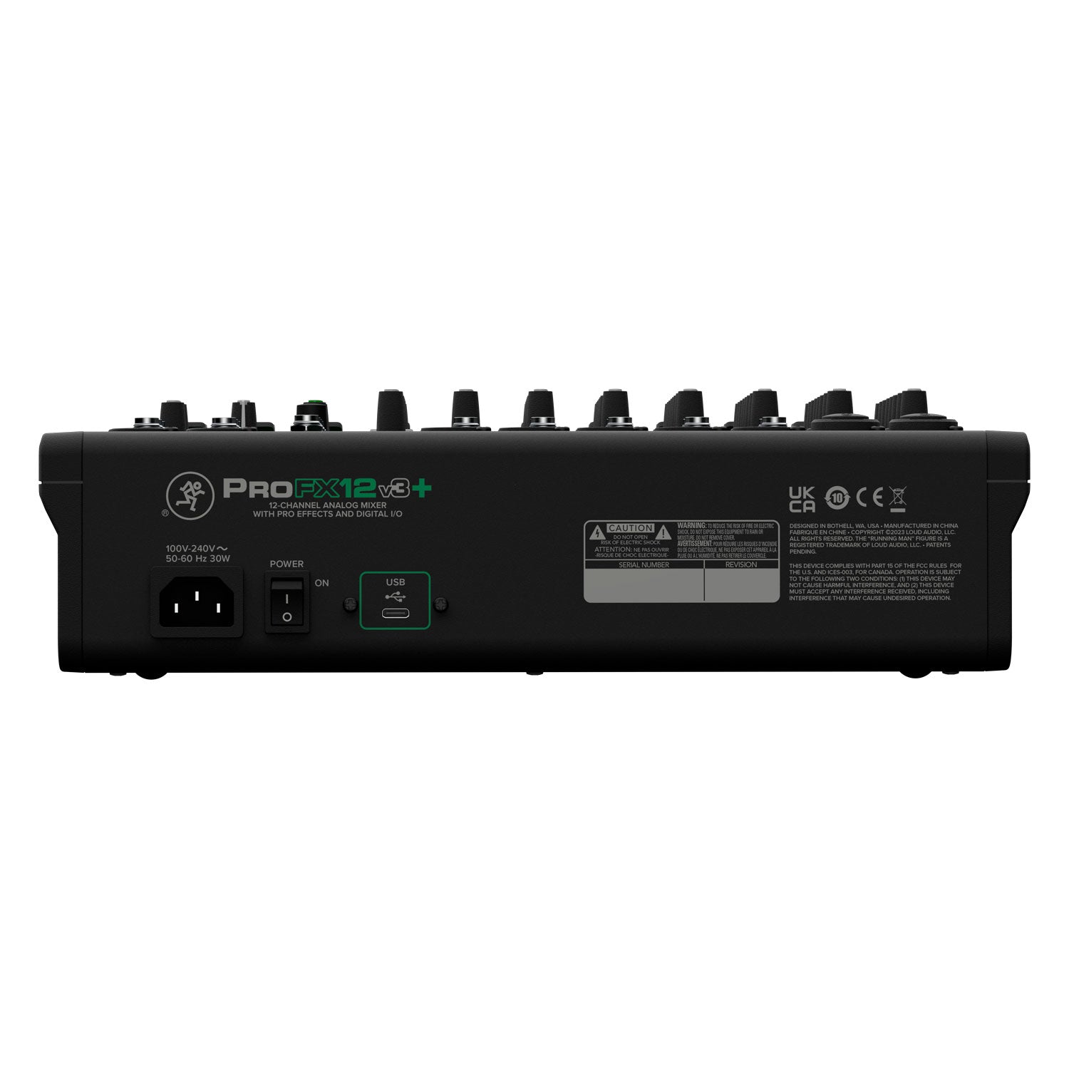 La Mackie ProFX12v3+ es una mesa de mezclas analógica profesional y una interfaz de audio USB-C con potentes mejoras para grabaciones con calidad de estudio y transmisiones en directo. Captura tu actuación con los preamplificadores Onyx y el ecualizador de canal, añade audio del ordenador mediante loopback, recibe llamadas por Bluetooth® y mejora tu sonido con los efectos GigFX+ mejorados en una pantalla LCD en color.