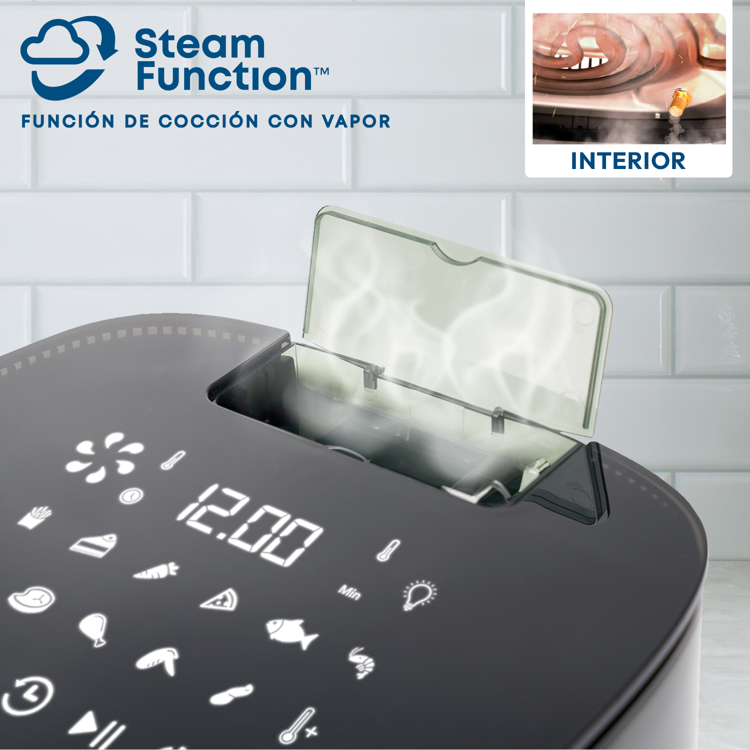 Además, incorpora función vapor, ideal para una cocción más jugosa y versátil.