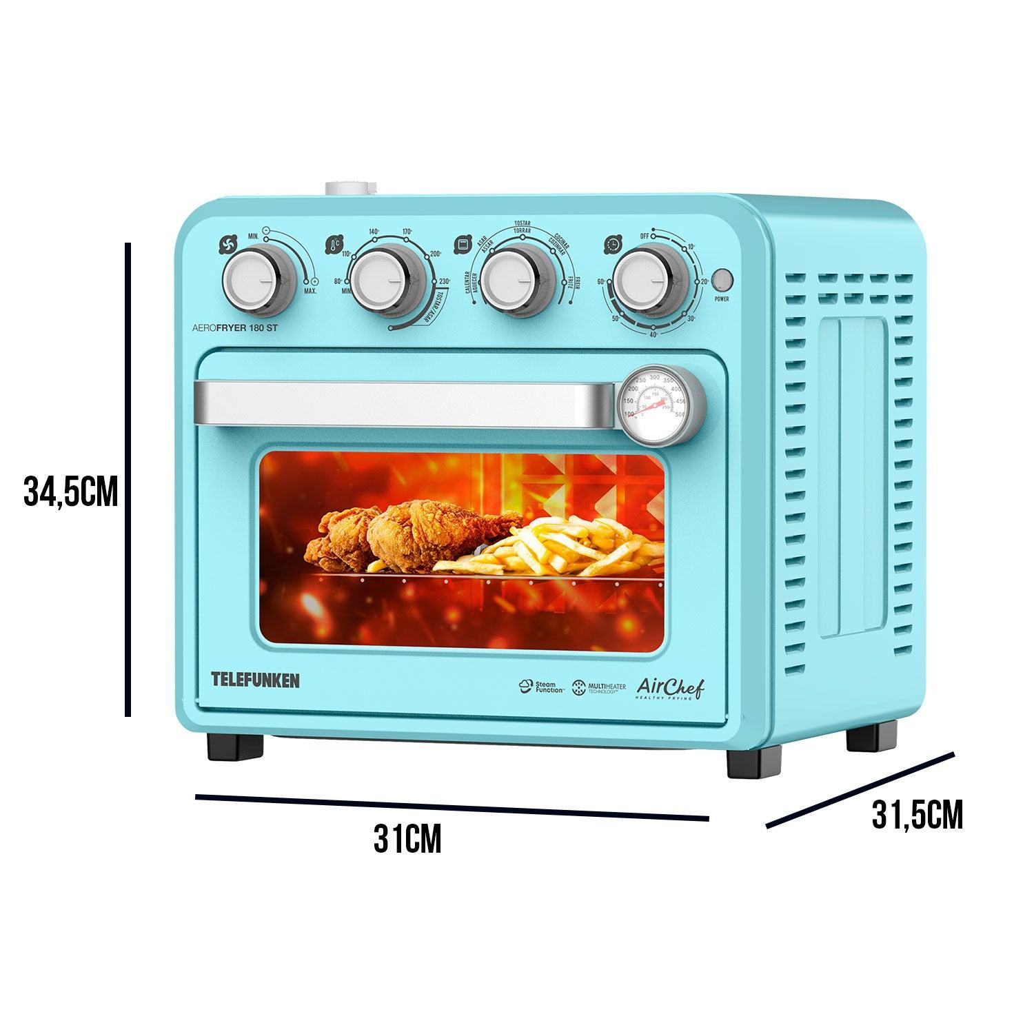 Lleva tus preparaciones al siguiente nivel con la AeroFryer 180ST de Telefunken, un horno freidora de aire con función vapor que combina diseño elegante, gran capacidad y versatilidad total en tu cocina.